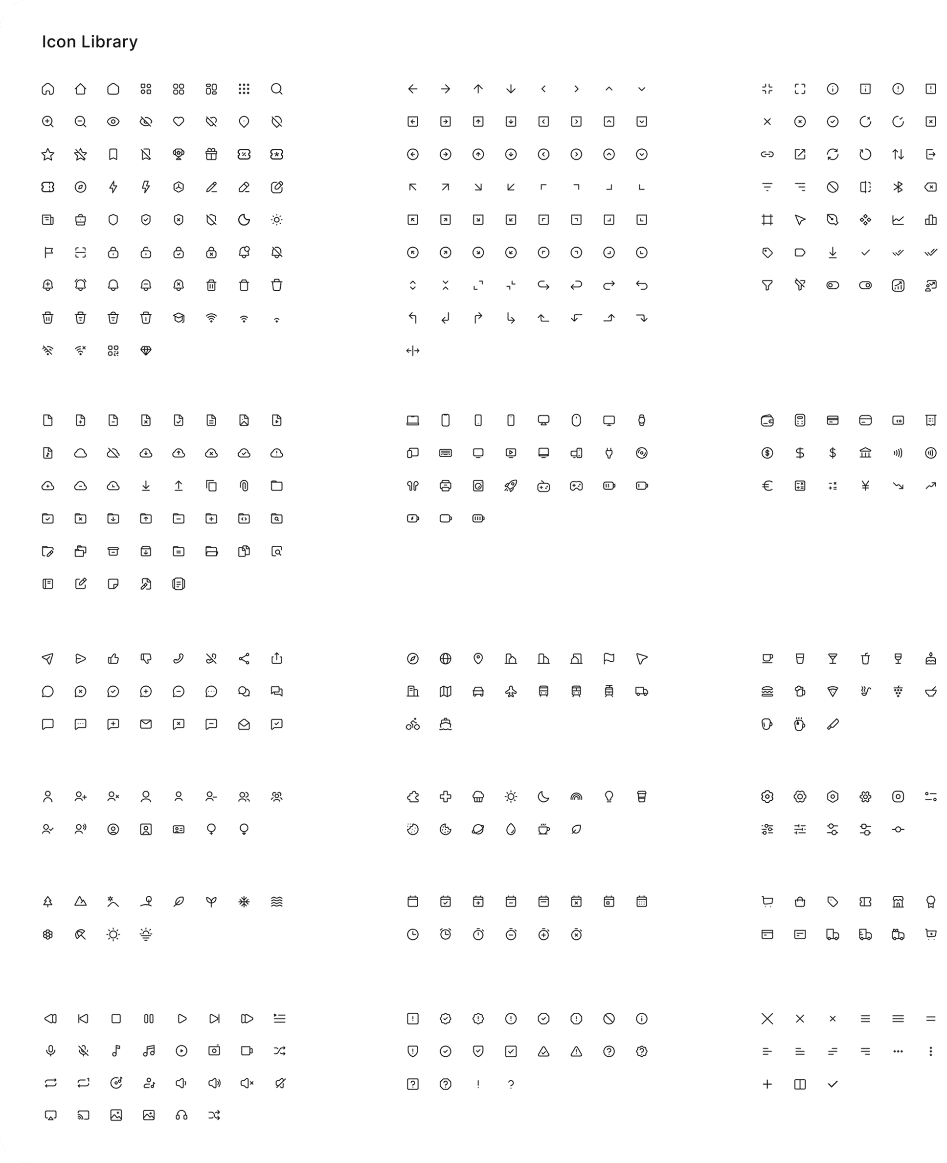 System icons are crafted to be simple, modern, and approachable, with a touch of personality, focusing on conveying essential characteristics in a minimalistic style. Each icon is stripped down to its simplest form, featuring bold, geometric shapes. They retain a symmetrical and consistent design, ensuring clarity and readability even at smaller sizes.