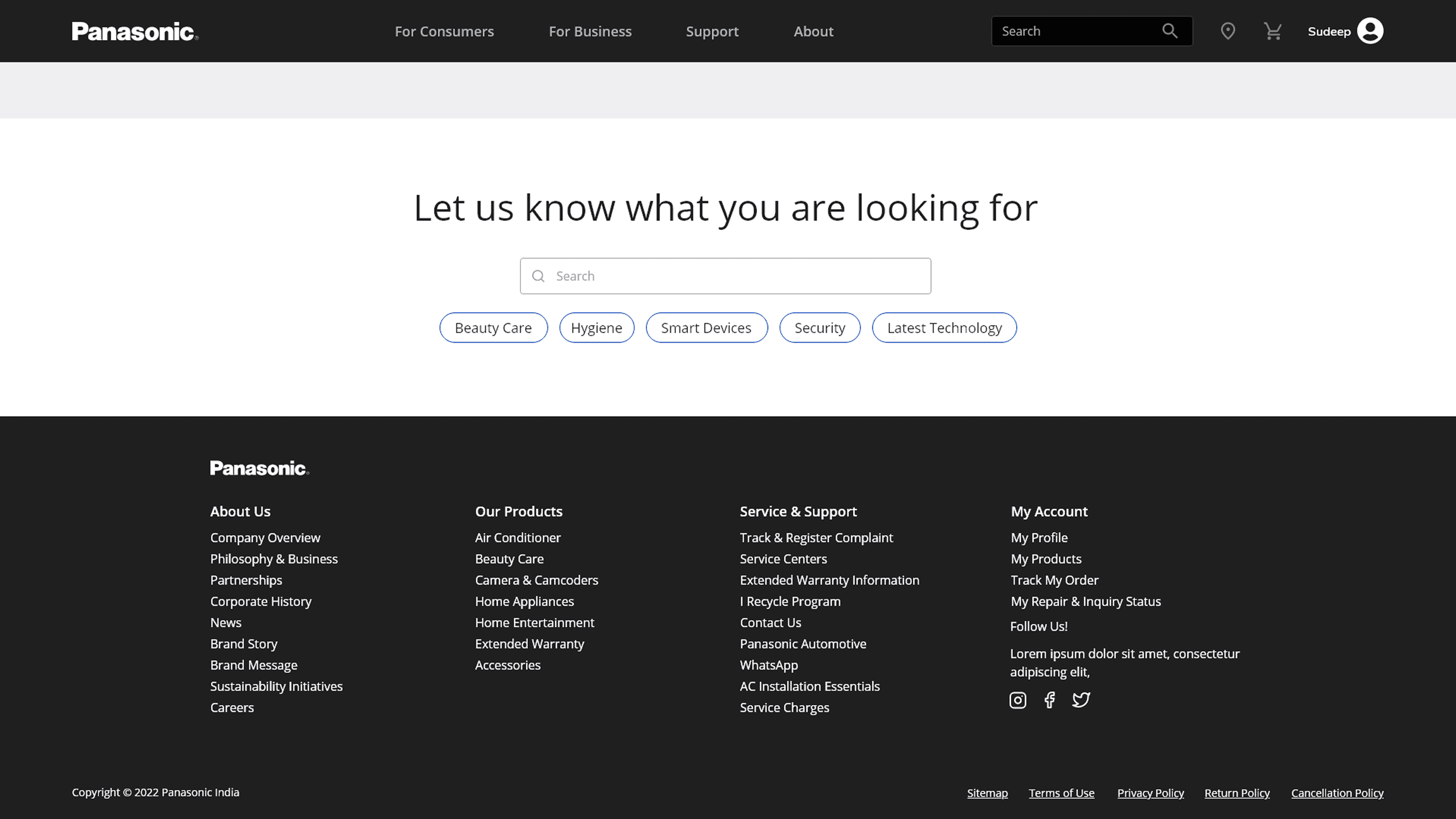 Panasonic leverages insights into user behavior, owned products, and recent purchases to deliver a personalized experience.